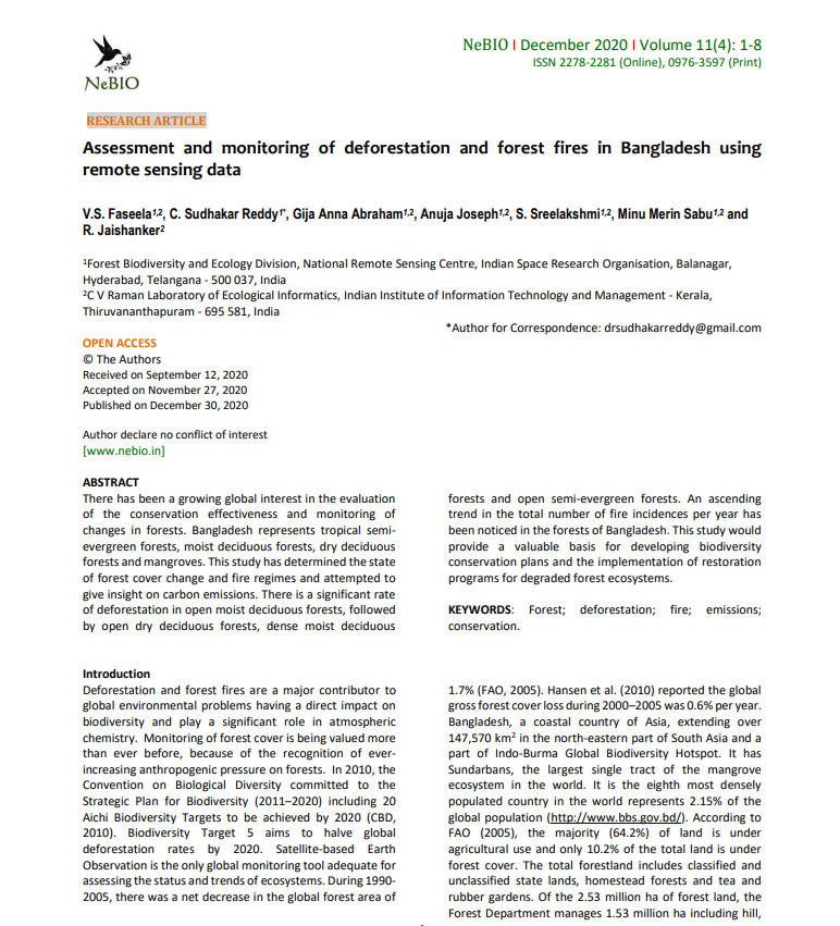 Assessment and monitoring of deforestation and forest fires in Bangladesh using remote sensing data