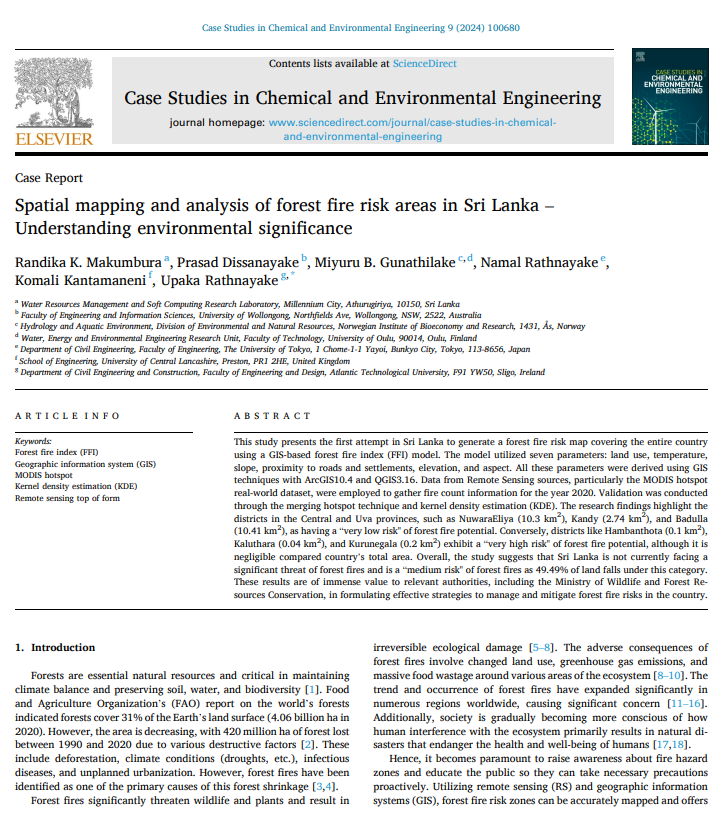 Spatial mapping and analysis of forest fire risk areas in Sri Lanka Understanding environmental significance