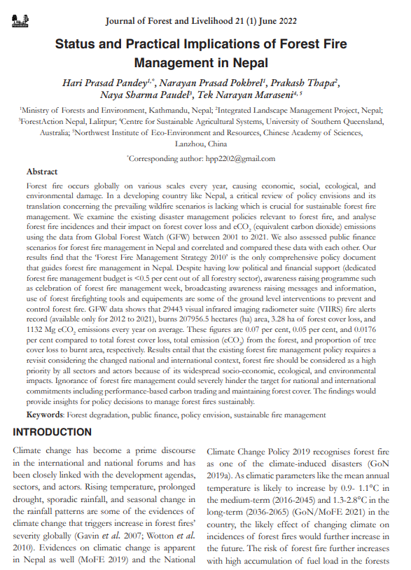 Status and Practical Implications of Forest Fire Management in Nepal